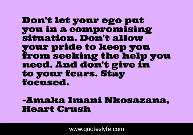"Amaka Imani Nkosazana, Heart Crush Quotes." Quoteslyfe.com, 2025. Sat. 06 Dec. 2025. <https://www.quoteslyfe.com/quote/Don-t-let-your-ego-put-you-73654>.