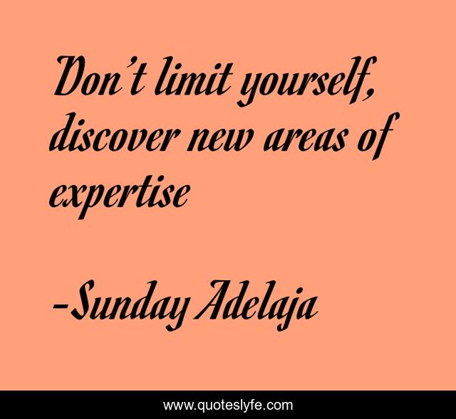 "Sunday Adelaja Quotes." Quoteslyfe.com, 2025. Sat. 06 Dec. 2025. <https://www.quoteslyfe.com/quote/Don-t-limit-yourself-discover-new-areas-46341>.
