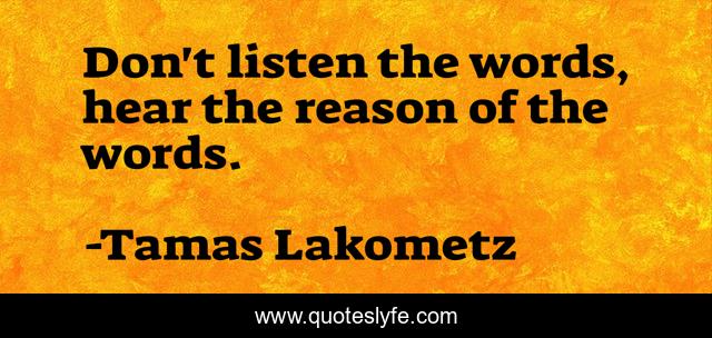 This page presents the quote "Don't listen the words, hear the reason of the words.". Author of this quote is Tamas Lakometz. This quote is about reason, hear, words-of-wisdom-of-wisdom, words, dont,.