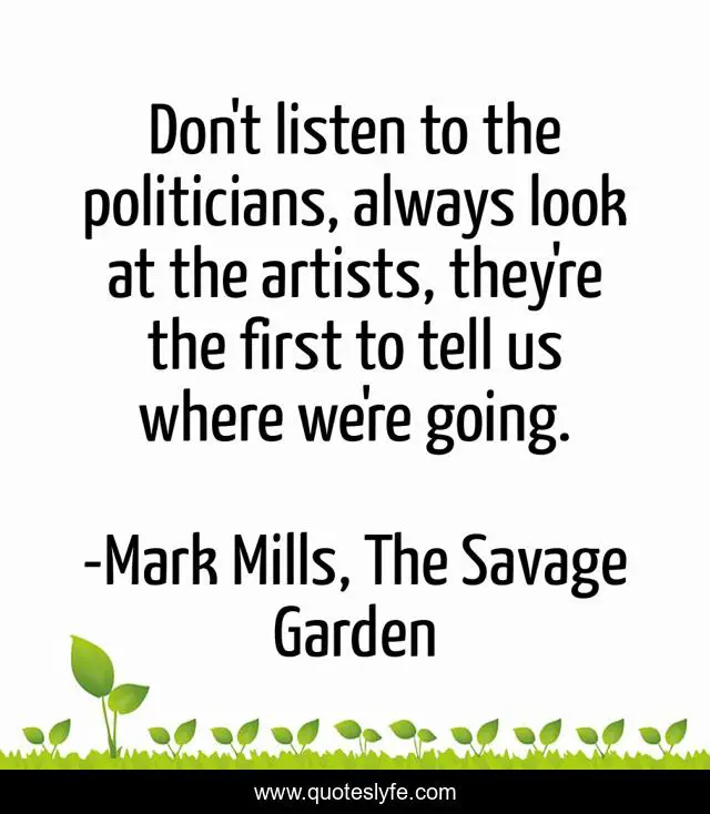 "Mark Mills, The Savage Garden Quotes." Quoteslyfe.com, 2025. Fri. 05 Dec. 2025. <https://www.quoteslyfe.com/quote/Don-t-listen-to-the-politicians-always-243849>.