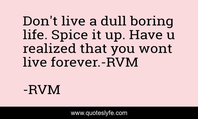 This page presents the quote "Don't live a dull boring life. Spice it up. Have u realized that you wont live forever.-RVM". Author of this quote is RVM. This quote is about enthusiasm, motivation, inspirational,.
