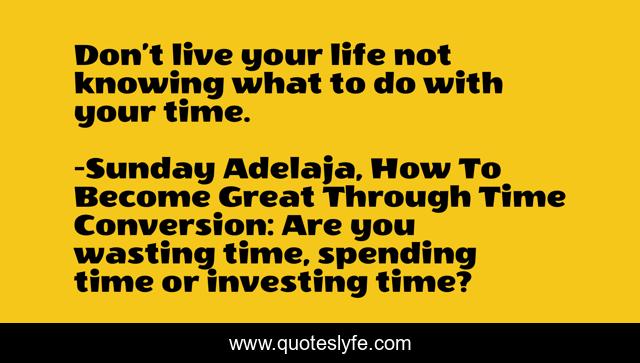 "Sunday Adelaja, How To Become Great Through Time Conversion: Are you wasting time, spending time or investing time? Quotes." Quoteslyfe.com, 2025. Fri. 05 Dec. 2025. <https://www.quoteslyfe.com/quote/Don-t-live-your-life-not-knowing-30787>.