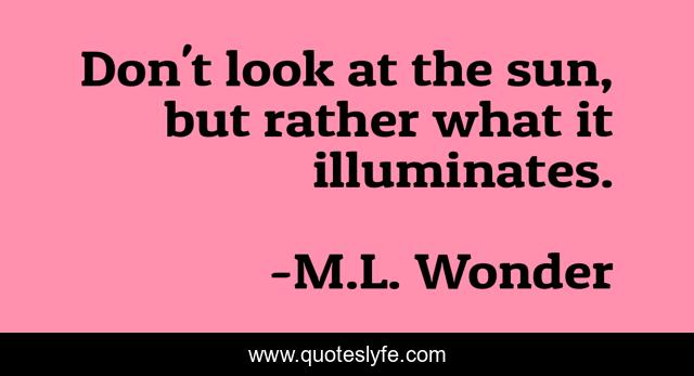 This page presents the quote "Don't look at the sun, but rather what it illuminates.". Author of this quote is M.L. Wonder. .