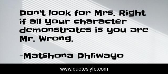 "Matshona Dhliwayo Quotes." Quoteslyfe.com, 2025. Fri. 05 Dec. 2025. <https://www.quoteslyfe.com/quote/Don-t-look-for-Mrs-Right-if-198830>.
