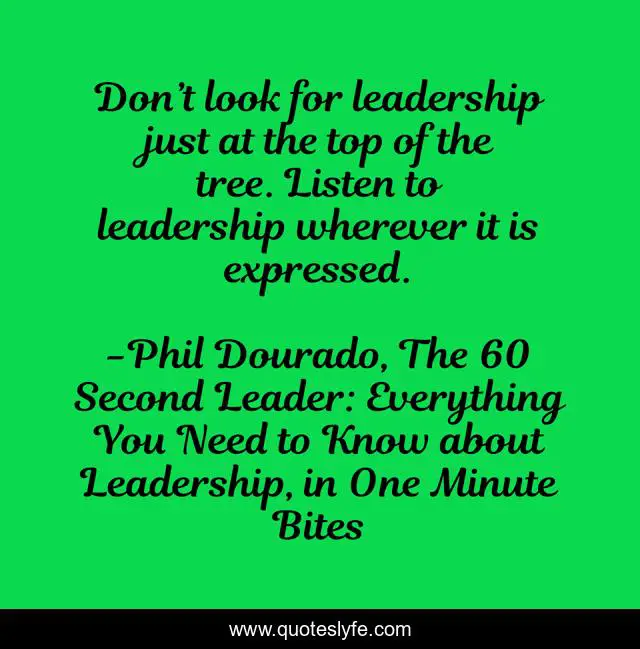 "Phil Dourado, The 60 Second Leader: Everything You Need to Know about Leadership, in One Minute Bites Quotes." Quoteslyfe.com, 2025. Mon. 08 Dec. 2025. <https://www.quoteslyfe.com/quote/Don-t-look-for-leadership-just-at-64250>.