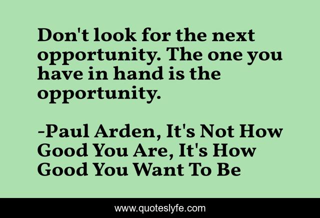 "Paul Arden, It's Not How Good You Are, It's How Good You Want To Be Quotes." Quoteslyfe.com, 2025. Fri. 05 Dec. 2025. <https://www.quoteslyfe.com/quote/Don-t-look-for-the-next-opportunity-128450>.
