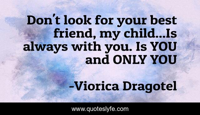 This page presents the quote "Don't look for your best friend, my child...Is always with you. Is YOU and ONLY YOU". Author of this quote is Viorica Dragotel. .