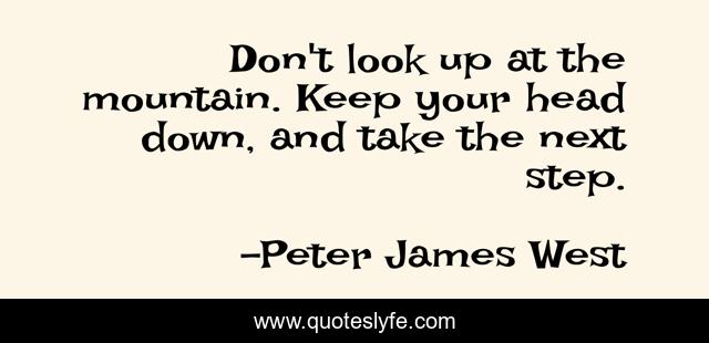 This page presents the quote "Don't look up at the mountain. Keep your head down, and take the next step.". Author of this quote is Peter James West. This quote is about enthusiasm, inspirational,.