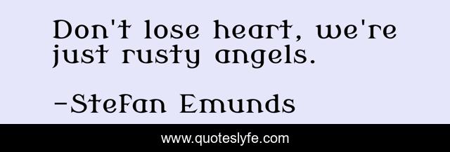 This page presents the quote "Don't lose heart, we're just rusty angels.". Author of this quote is Stefan Emunds. This quote is about heart, inspiring, positive-outlook, positive, motivational, spiritual, soul, optimistic, inspirational,.