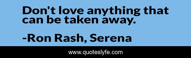 This page presents the quote "Don't love anything that can be taken away.". Author of this quote is Ron Rash, Serena. This quote is about loss, love, affection,.