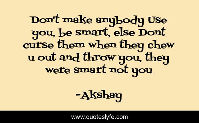 This page presents the quote "Don't make anybody Use you, be smart, else Dont curse them when they chew u out and throw you, they were smart not you". Author of this quote is Akshay. This quote is about life-love, friends, relationship,.