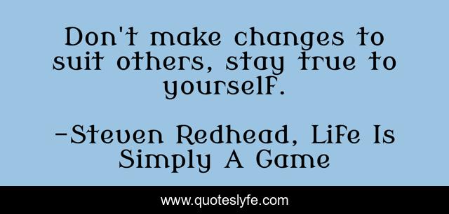 This page presents the quote "Don't make changes to suit others, stay true to yourself.". Author of this quote is Steven Redhead, Life Is Simply A Game. This quote is about stay-true, change, stay-true-to-yourself,.