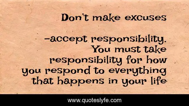 "accept responsibility. You must take responsibility for how you respond to everything that happens in your life Quotes." Quoteslyfe.com, 2025. Fri. 05 Dec. 2025. <https://www.quoteslyfe.com/quote/Don-t-make-excuses-200898>.