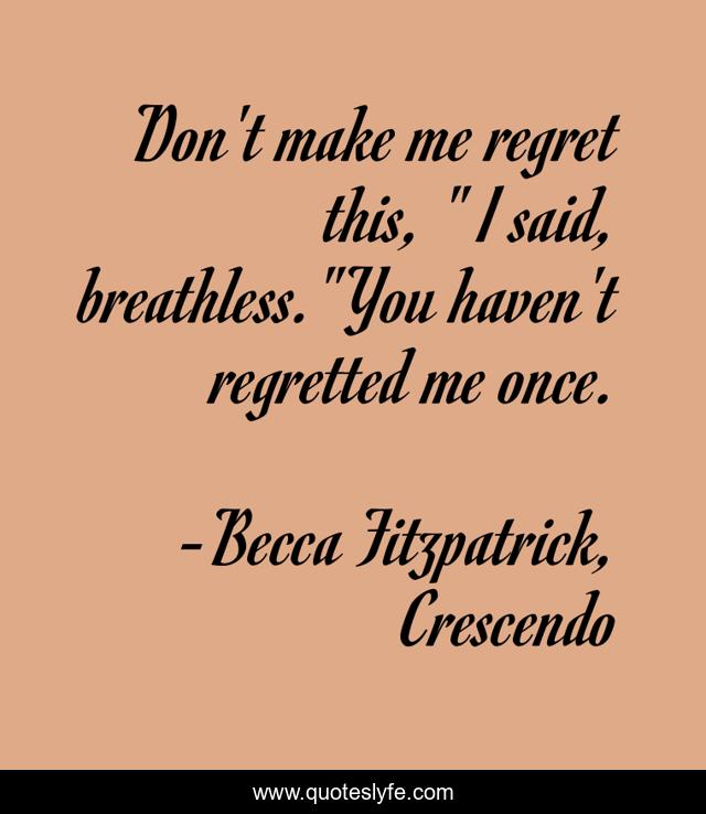 "Becca Fitzpatrick, Crescendo Quotes." Quoteslyfe.com, 2025. Fri. 05 Dec. 2025. <https://www.quoteslyfe.com/quote/Don-t-make-me-regret-this-I-202431>.