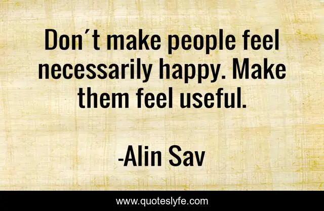 This page presents the quote "Don´t make people feel necessarily happy. Make them feel useful.". Author of this quote is Alin Sav. .