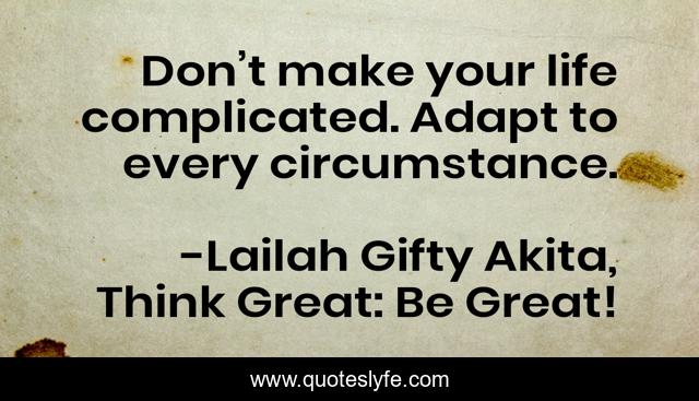 "Lailah Gifty Akita, Think Great: Be Great! Quotes." Quoteslyfe.com, 2025. Sat. 06 Dec. 2025. <https://www.quoteslyfe.com/quote/Don-t-make-your-life-complicated-Adapt-140356>.