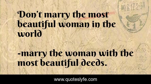 "marry the woman with the most beautiful deeds. Quotes." Quoteslyfe.com, 2025. Mon. 08 Dec. 2025. <https://www.quoteslyfe.com/quote/Don-t-marry-the-most-beautiful-woman-58270>.