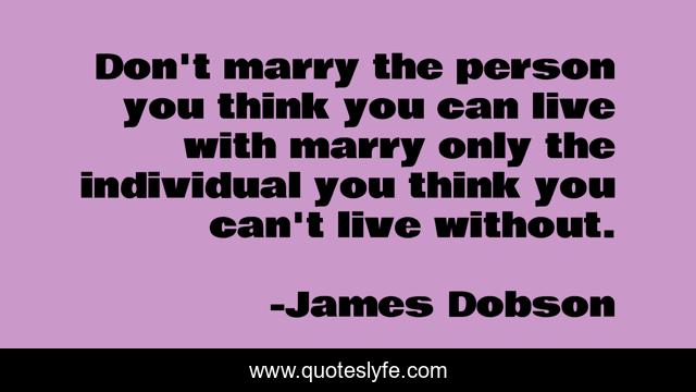 This page presents the quote "Don't marry the person you think you can live with marry only the individual you think you can't live without.". Author of this quote is James Dobson. This quote is about live, think,.