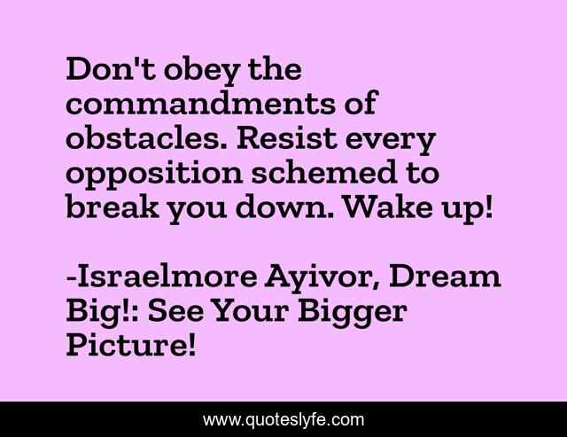 "Israelmore Ayivor, Dream Big!: See Your Bigger Picture! Quotes." Quoteslyfe.com, 2025. Fri. 05 Dec. 2025. <https://www.quoteslyfe.com/quote/Don-t-obey-the-commandments-of-obstacles-129526>.