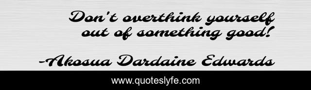 This page presents the quote "Don't overthink yourself out of something good!". Author of this quote is Akosua Dardaine Edwards. This quote is about inspirational-attitude, overthinking,.