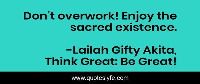 "Lailah Gifty Akita, Think Great: Be Great! Quotes." Quoteslyfe.com, 2025. Mon. 08 Dec. 2025. <https://www.quoteslyfe.com/quote/Don-t-overwork-Enjoy-the-sacred-existence-86388>.