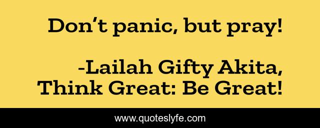 "Lailah Gifty Akita, Think Great: Be Great! Quotes." Quoteslyfe.com, 2025. Tue. 09 Dec. 2025. <https://www.quoteslyfe.com/quote/Don-t-panic-but-pray-76337>.