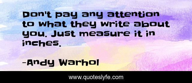 This page presents the quote "Don't pay any attention to what they write about you. Just measure it in inches.". Author of this quote is Andy Warhol. .
