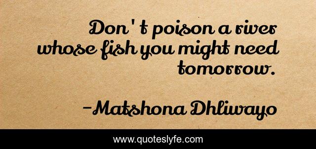 "Matshona Dhliwayo Quotes." Quoteslyfe.com, 2025. Sat. 06 Dec. 2025. <https://www.quoteslyfe.com/quote/Don-t-poison-a-river-whose-fish-98197>.
