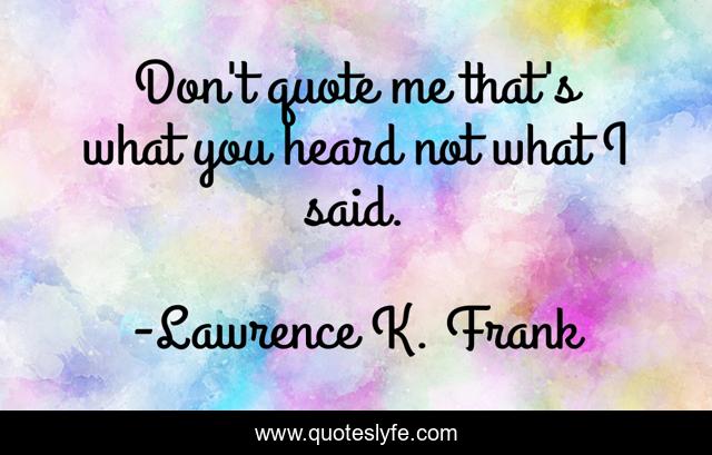 This page presents the quote "Don't quote me that's what you heard not what I said.". Author of this quote is Lawrence K. Frank. This quote is about quips, comments,.