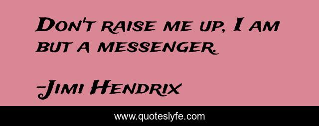This page presents the quote "Don't raise me up, I am but a messenger.". Author of this quote is Jimi Hendrix. This quote is about idols, art,.