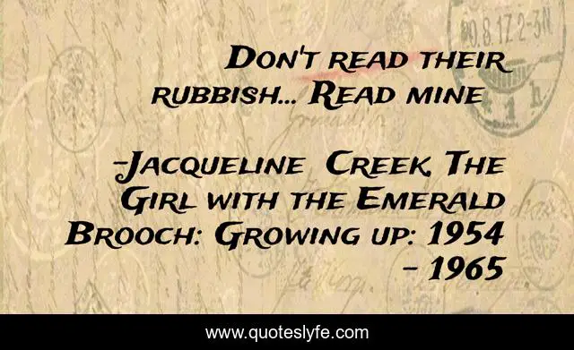 "Jacqueline Creek, The Girl with the Emerald Brooch: Growing up: 1954 - 1965 Quotes." Quoteslyfe.com, 2025. Mon. 08 Dec. 2025. <https://www.quoteslyfe.com/quote/Don-t-read-their-rubbish-Read-mine-204300>.