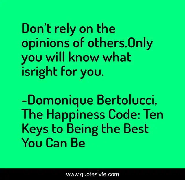 "Domonique Bertolucci, The Happiness Code: Ten Keys to Being the Best You Can Be Quotes." Quoteslyfe.com, 2025. Tue. 09 Dec. 2025. <https://www.quoteslyfe.com/quote/Don-t-rely-on-the-opinions-of-215302>.