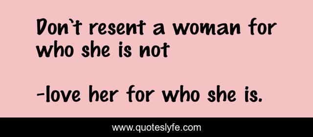 "love her for who she is. Quotes." Quoteslyfe.com, 2025. Mon. 08 Dec. 2025. <https://www.quoteslyfe.com/quote/Don-t-resent-a-woman-for-who-49417>.