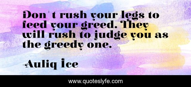This page presents the quote "Don't rush your legs to feed your greed. They will rush to judge you as the greedy one.". Author of this quote is Auliq Ice. This quote is about hard-work, hardworking, rushed-work, patience, greedy, rushing, greed,.