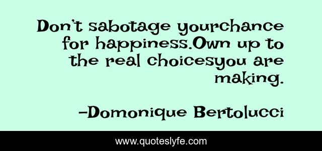 "Domonique Bertolucci Quotes." Quoteslyfe.com, 2025. Mon. 08 Dec. 2025. <https://www.quoteslyfe.com/quote/Don-t-sabotage-yourchance-for-happiness-Own-215382>.