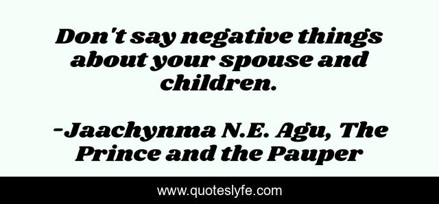 "Jaachynma N.E. Agu, The Prince and the Pauper Quotes." Quoteslyfe.com, 2025. Mon. 08 Dec. 2025. <https://www.quoteslyfe.com/quote/Don-t-say-negative-things-about-your-28811>.