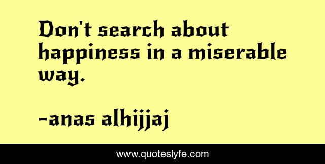 This page presents the quote "Don't search about happiness in a miserable way.". Author of this quote is anas alhijjaj. This quote is about life, happy, inspiration,.