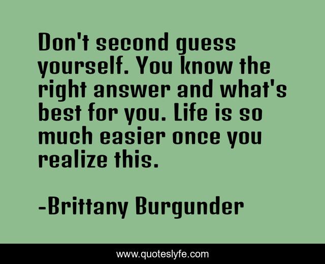 "Brittany Burgunder Quotes." Quoteslyfe.com, 2025. Mon. 08 Dec. 2025. <https://www.quoteslyfe.com/quote/Don-t-second-guess-yourself-You-know-38017>.