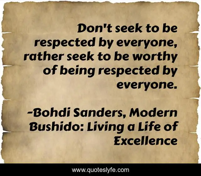 "Bohdi Sanders, Modern Bushido: Living a Life of Excellence Quotes." Quoteslyfe.com, 2025. Sat. 06 Dec. 2025. <https://www.quoteslyfe.com/quote/Don-t-seek-to-be-respected-by-173622>.