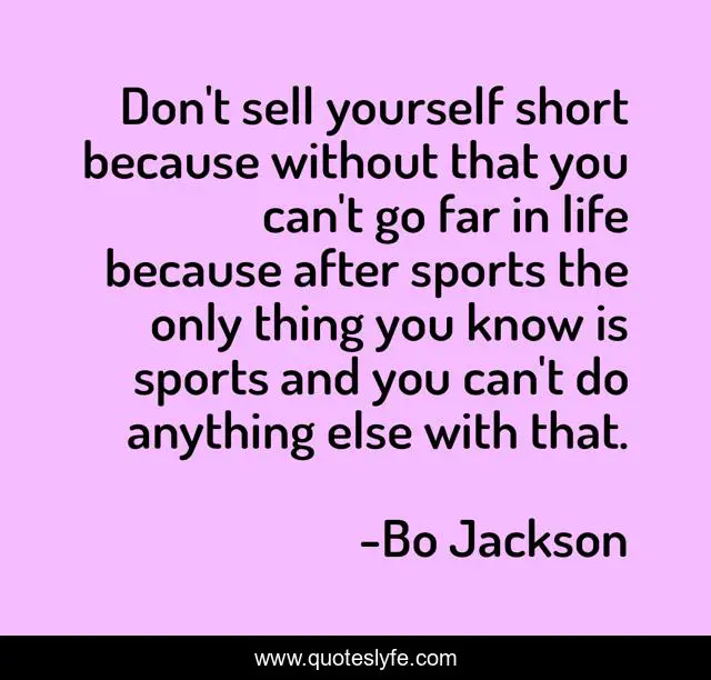 This page presents the quote "Don't sell yourself short because without that you can't go far in life because after sports the only thing you know is sports and you can't do anything else with that.". Author of this quote is Bo Jackson. This quote is about life, short, yourself,.