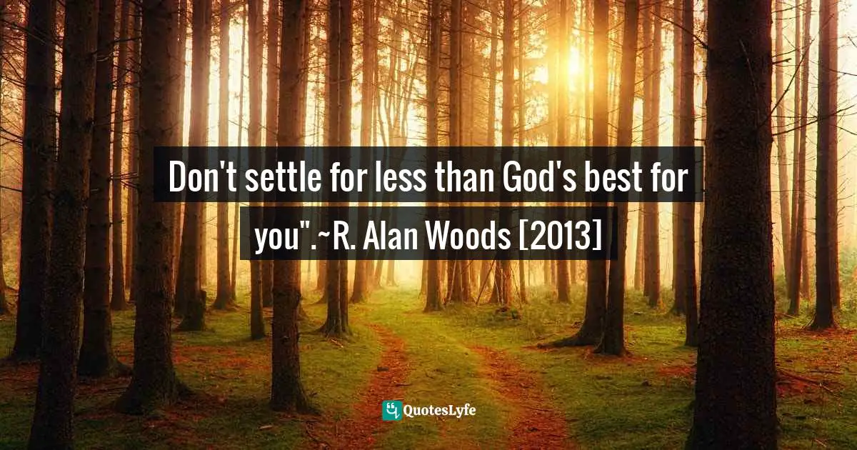 Don't settle for less than God's best for you".~R. Alan Woods [2013]
