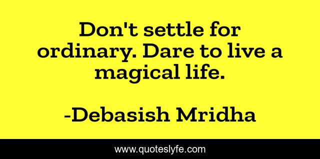 This page presents the quote "Don't settle for ordinary. Dare to live a magical life.". Author of this quote is Debasish Mridha. This quote is about life, love, knowledge, inspirational, intelligence, philosophy, wisdom, quotes, affection,.