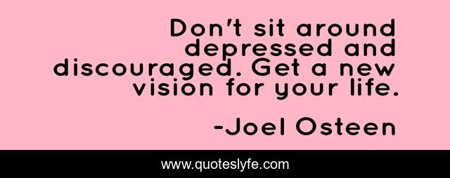 This page presents the quote "Don't sit around depressed and discouraged. Get a new vision for your life.". Author of this quote is Joel Osteen. This quote is about faith, dreams, hope, vision, god,.