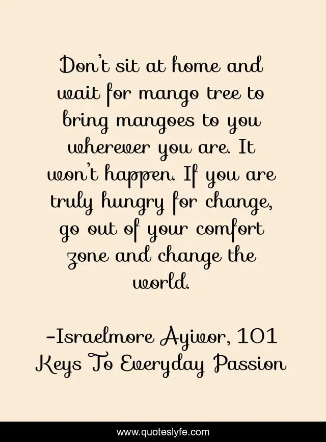 "Israelmore Ayivor, 101 Keys To Everyday Passion Quotes." Quoteslyfe.com, 2025. Fri. 05 Dec. 2025. <https://www.quoteslyfe.com/quote/Don-t-sit-at-home-and-wait-55068>.