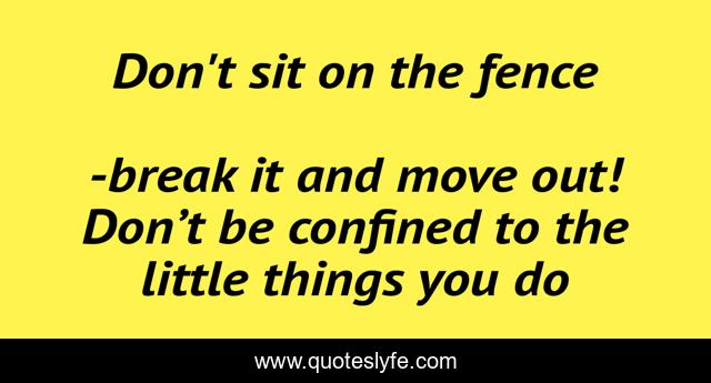 This page presents the quote "Don't sit on the fence". Author of this quote is break it and move out! Don’t be confined to the little things you do. .