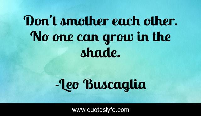This page presents the quote "Don't smother each other. No one can grow in the shade.". Author of this quote is Leo Buscaglia. This quote is about grow, shade,.