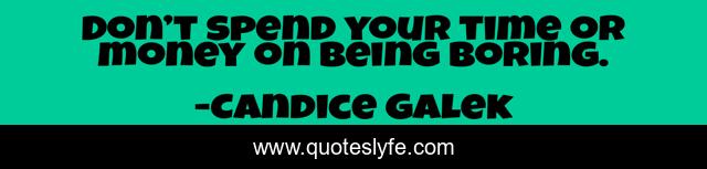 This page presents the quote "Don’t spend your time or money on being boring.". Author of this quote is Candice Galek. This quote is about social-media, fashion, business, marketing, advice, advertising,.