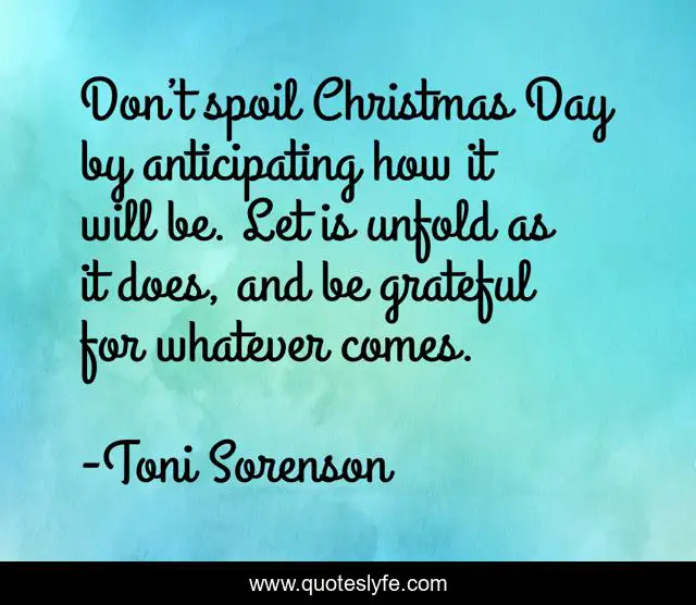 "Toni Sorenson Quotes." Quoteslyfe.com, 2025. Tue. 09 Dec. 2025. <https://www.quoteslyfe.com/quote/Don-t-spoil-Christmas-Day-by-anticipating-220608>.