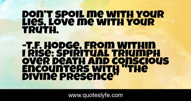 "T.F. Hodge, From Within I Rise: Spiritual Triumph Over Death and Conscious Encounters with "The Divine Presence" Quotes." Quoteslyfe.com, 2025. Mon. 08 Dec. 2025. <https://www.quoteslyfe.com/quote/Don-t-spoil-me-with-your-lies-9356>.