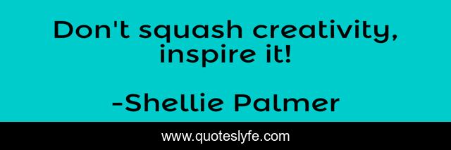 This page presents the quote "Don't squash creativity, inspire it!". Author of this quote is Shellie Palmer. This quote is about artistry, art, create, creation, inspirational, enthusiasm, inspiration,.